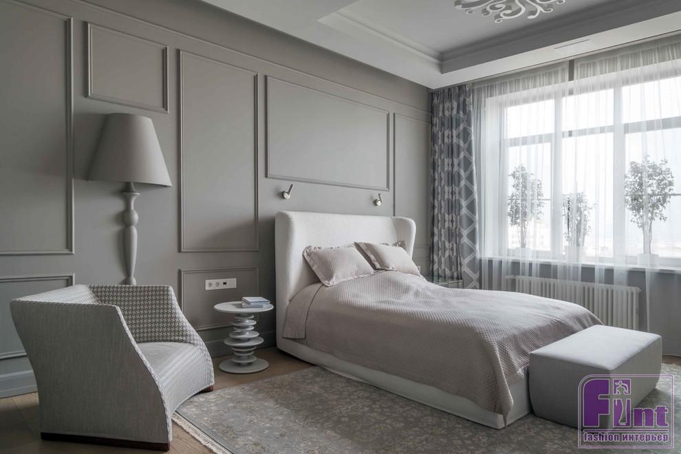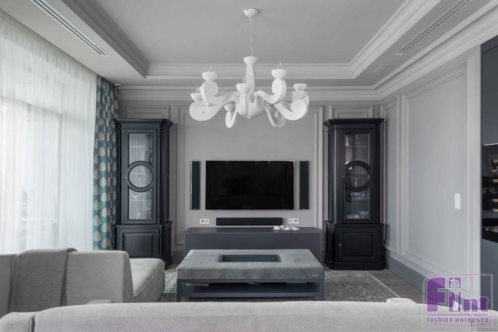 К Дмитрию Быкову обратилась хозяйка просторной московской квартиры, мечтавшая об интерьере, одновременно функциональном и консервативном, в благородных серых тонах. Квартира общей площадью 145 кв.м. вместила в себя: прихожую, гостиную-столовую-кухню, спальню, гардеробную, ванную комнату, детскую с санузлом, кабинет, кладовую при кухне, гостевой туалет и постирочную. Квартира разделена на общественную зону и зону спален и кабинета. В отделке использованы традиционные материалы: гипсовая лепнина, экологически чистые краски от известного мирового производителя ЛКМ, штучный и щитовой паркет, керамическая плитка.
