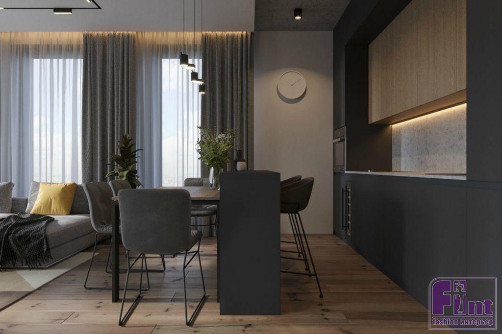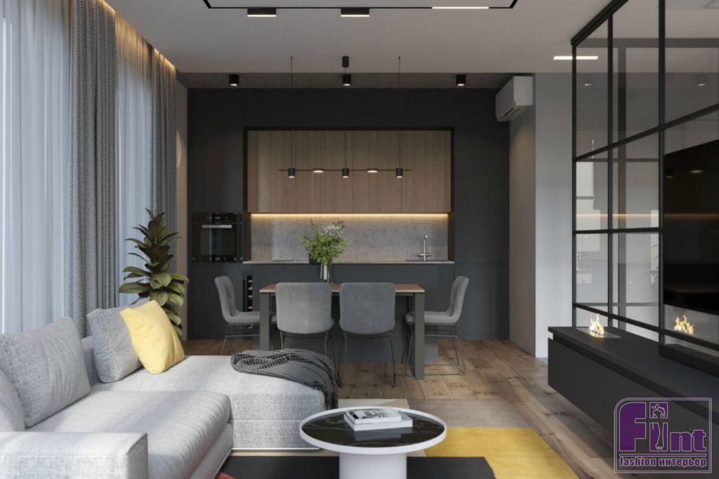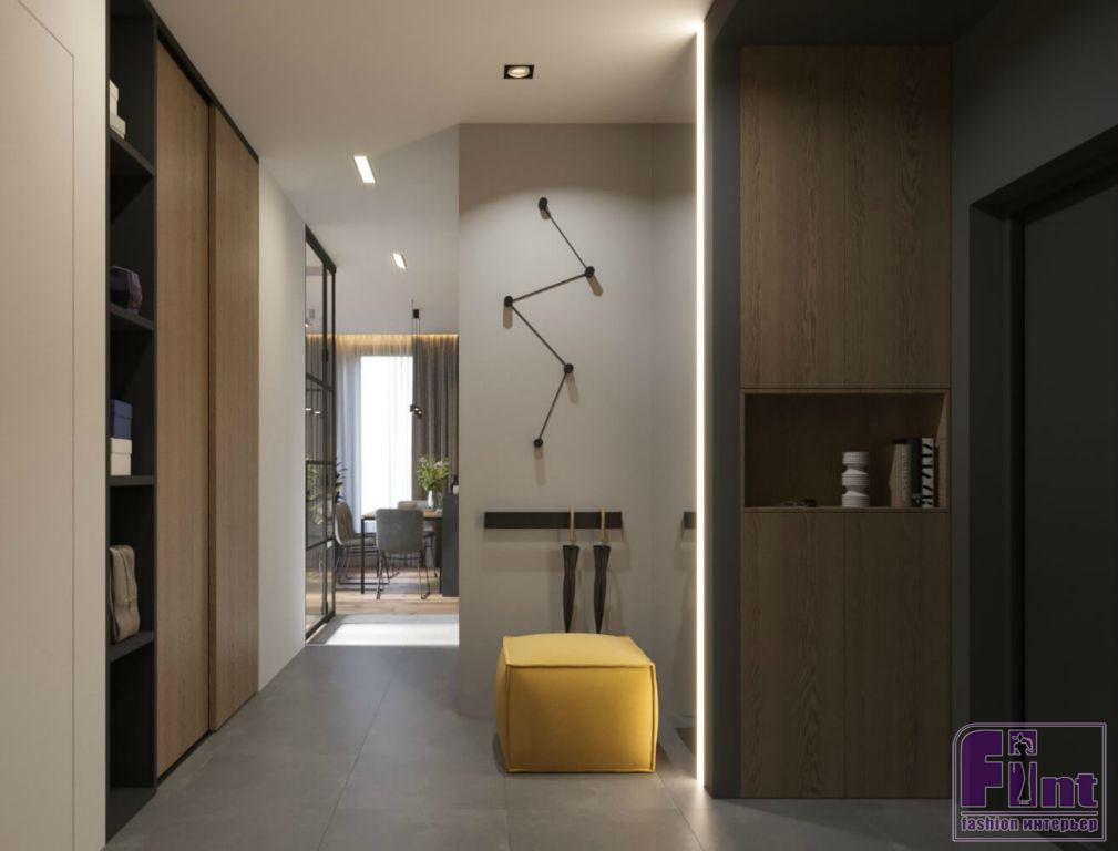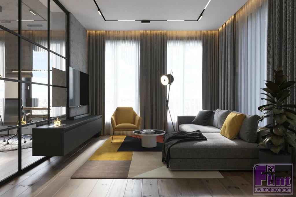 К дизайнерам студии Geometrium обратился хозяин квартиры в одной из столичных новостроек бизнес-класса. Свой будущий интерьер заказчик видел подчёркнуто современным и максимально комфортным — с отдельным кабинетом, биокамином в гостиной и продуманной системой хранения.