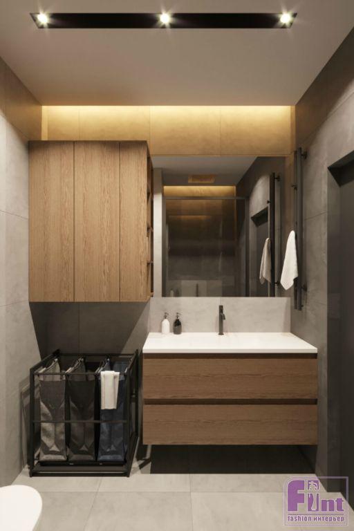 «Проект мы начали с перепланировки, — вспоминает Павел. — Прихожую расширили за счёт переноса входа в ванную в спальню, кабинет отделили от гостиной с помощью перегородки с особым стеклом, зону постирочной и хранения бытовых вещей организовали в гостевом санузле и сделали больше шести метров полноценных глубоких шкафов».