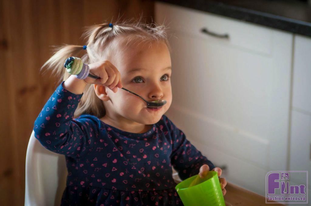 Готово! Осталось немного припорошить ягодки черники светло-сиреневыми или голубыми тенями для век или сухой пастелью. Затем, ставим наше изделие в духовку на 130 градусов на 30 минут (по инструкции, указанной на упаковке полимерной глины). Итак, ложечка прошла обжиг, остыла, и получился очень необычный и красивый аксессуар для подачи десертов, для использования в качестве сувенира, подарка и для оформления праздничного стола на детский праздник!