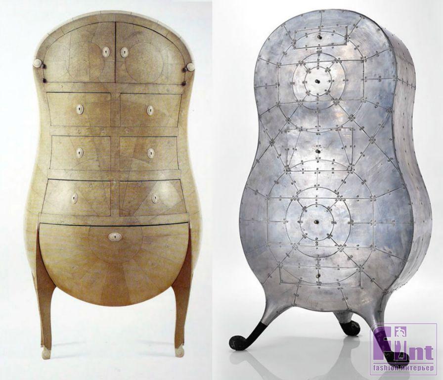 Спустя годы форма была отправлена на его родину в Австралию, где вручную в течение нескольких лет работа была, наконец, завершена. Шкаф Марка Ньюсона — прямая ссылка на шкаф 1925 года, отделанный кожей ската, авторства Андре Гру (André Groult). Конечно, Ньюсон любил «Мемфис». Но теперь Pod of Drawers формулируют как неоклассицизм в стиле стимпанк, который позаимствован из идиомы салонной мебели эпохи французской Директории.