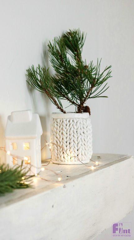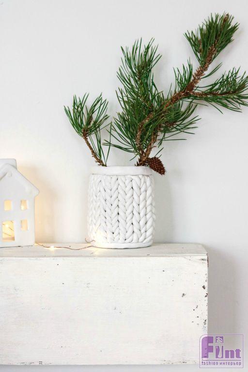 Вязаные вещи обладают исключительной и особой магией. Их волшебство кроется в моментально узнаваемом узоре классической вязки. Одного взгляда на крупные вязаные петли достаточно, чтобы ощутить тепло, уют и комфорт родного дома. Этот орнамент стал настолько популярным, что в стиле вязаных вещей дизайнеры стали рисовать плакаты, делать различные аксессуары и предметы интерьера. Но как быть, если вы не умеете вязать крючком или на спицах, а украсить свой дом «вязаным» изделием хочется? Можно, конечно, поискать подходящий аксессуар в интернете или в сувенирных магазинах, но значительно проще и во много раз дешевле будет сделать такой аксессуар своими руками! Тем более что общая стоимость материалов, необходимых для создания «вязаного» предмета интерьера, составит не более 300-500 рублей!