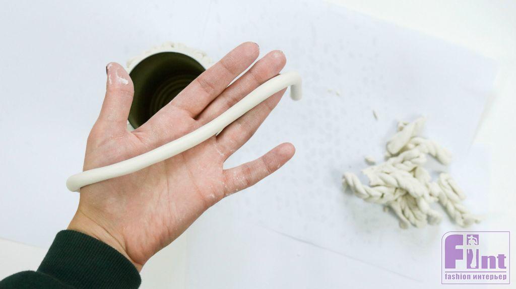 Полимерная глина имеет красивый белый оттенок, но для нашего проекта требовалось идеально белое изделие. Поэтому, после запекания и остывания мы покрасили наше изделие белой глянцевой акриловой краской. Получилось очень красиво! Осталось высадить в банку подходящее растение и наслаждаться результатом своей работы!