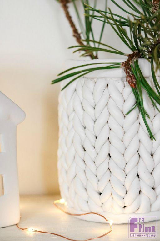 Сегодня мы предлагаем вам мастер-класс по созданию удивительно красивого кашпо из полимерной глины, оформленного в стиле «вязаной» вещи. Для этого нам почти ничего не потребуется, кроме самой полимерной глины, которую можно купить в любом магазине для творчества по цене от 200 рублей! Помимо глины нам будет нужна самая простая жестяная банка (или любая другая ёмкость, которую не страшно будет засунуть в духовку для запекания полимерной глины), рабочая поверхность (специальная доска) и нож. На всю работу, даже при отсутствии необходимых навыков, у вас уйдёт не более 30 минут!
