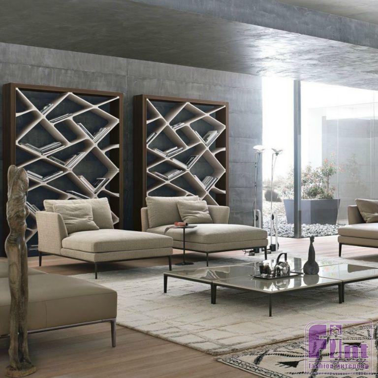 Знаковый стеллаж из коллекции Home Project увеличился в размере — теперь он от 312 см в длину и 237 см в высоту. Асимметричные диагональные полки, превращющие стеллаж в декоративный объект, изготовлены из полиуретана Baydur и покрыты цементом — в сером или в матовом лаке. Их обрамляет каркас из окрашенного в чёрный цвет или термообработанного дуба.