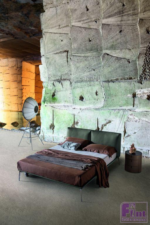 Главная особенность новой кровати — лаконичная форма. Объёмное изголовье контрастирует с тонкими линиями основания и узкими ножками из окрашенного литого алюминия. Комфортный сон обеспечивает прослойка из гусиного пуха и полиэфирного волокна. Две подушки, составляющие изголовье, выполнены из пенополиуретана различной плотности. Модель обита приятной на ощупь мягкой кожей.