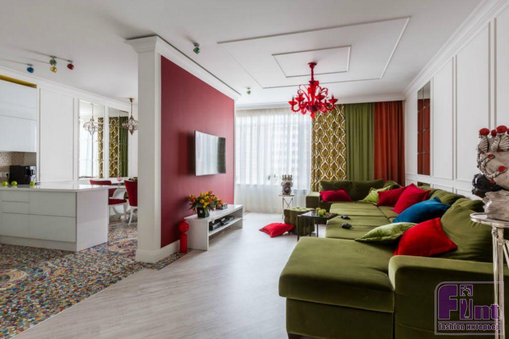 «Исходя из высказанных пожеланий, я поняла, что интерьер должен получиться эклектичным», — рассказывает Светлана. А поскольку дизайнер недавно вернулась из Барселоны, вдохновленная творчеством архитектора Антонио Гауди, она решила использовать знаменитый парк Гуэль в качестве отправной точки при создании интерьера. За основу дизайнер взяла большие объёмы белого и бежевого и на их фоне разместила яркие акценты: красный, оливковый и немного синего.