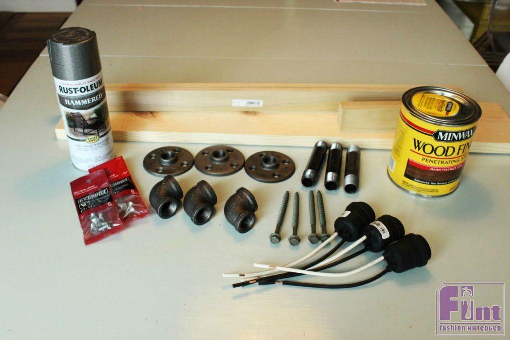 Сегодня мы предлагаем вам мастер-класс по созданию своими руками потрясающего и стильного светильника в индустриальном стиле для ванной комнаты или прихожей. Эти места названы не случайно, поскольку этот светильник является отличным дополнением к большому зеркалу, которые обычно размещают в ванных комнатах или прихожих. Следуя нашим советам, вы можете трансформировать наш проект. Сокращать или увеличивать количество ламп, менять размеры основания, использовать различные лампочки (матовые, цветные, светодиодные и пр.). В любом случае, в итоге у вас получится потрясающий светильник в индустриальном стиле или стиле лофт, который, без сомнения, украсит ваш дом.