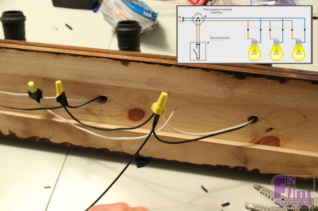 Шаг №3. Прикрепите «патроны» и сделайте электрическую разводку.