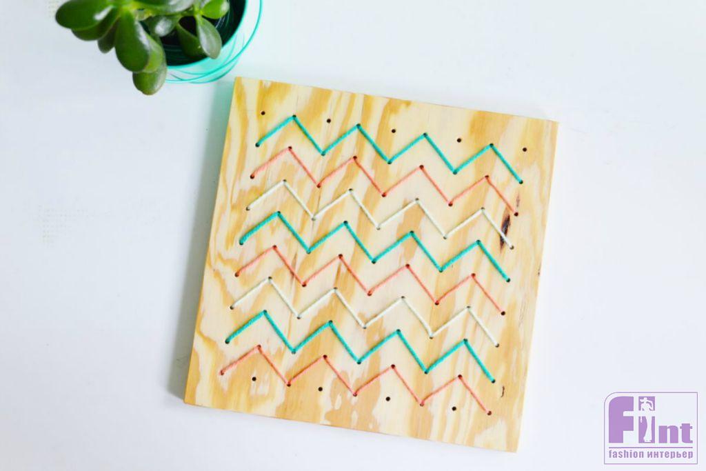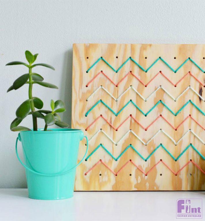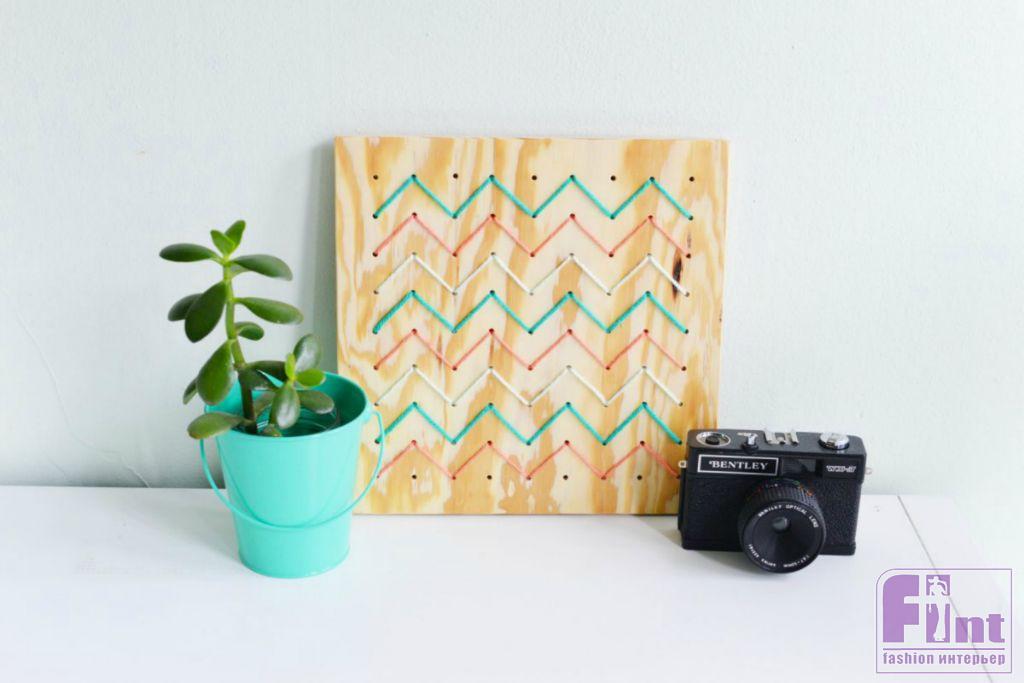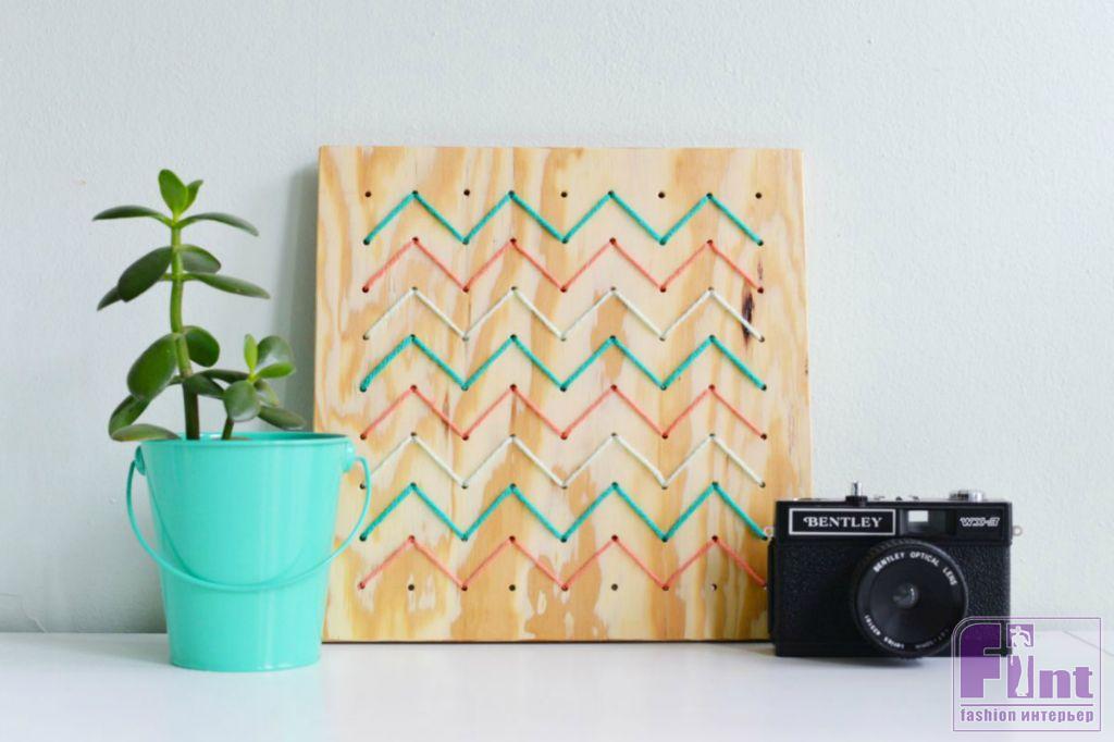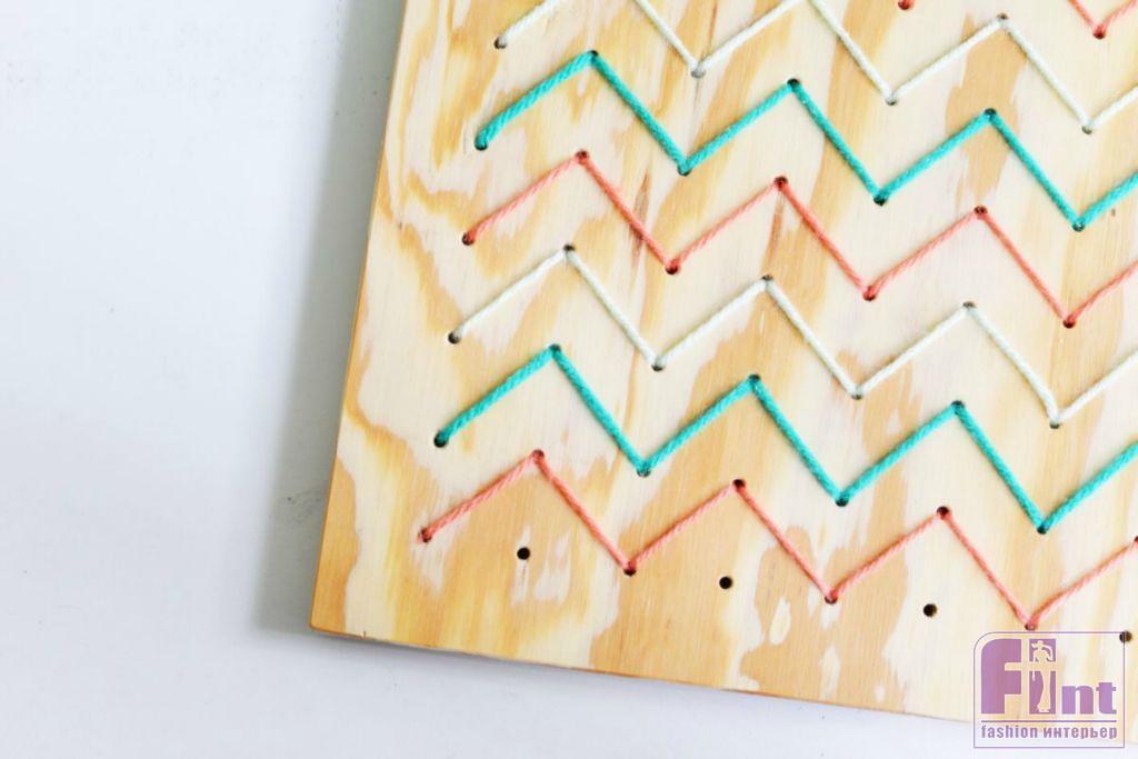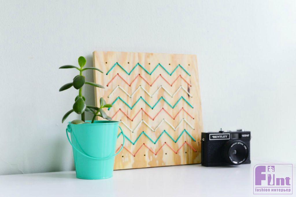 Стиль и уют любому интерьеру придают детали и аксессуары. Именно от умелого подбора элементов декора зависит общее восприятие жилого пространства. Сегодня мы предлагаем вам сделать своими руками необычное и стильное панно с невероятно популярным орнаментом «зигзаг» в технике стрингарт. Такое панно, без сомнения, станет особым украшением любого стильного интерьера и добавит в него яркую нотку скандинавского стиля.