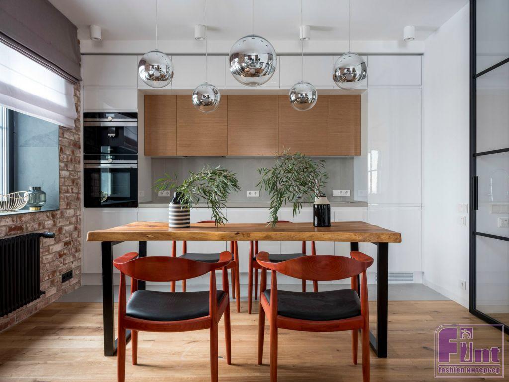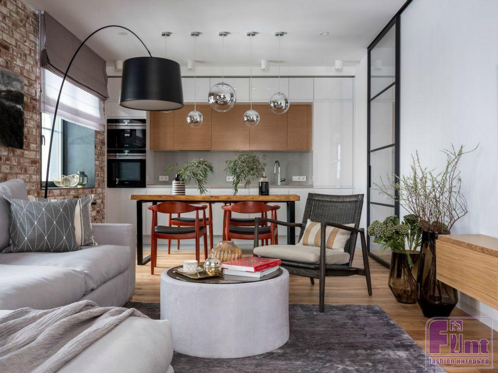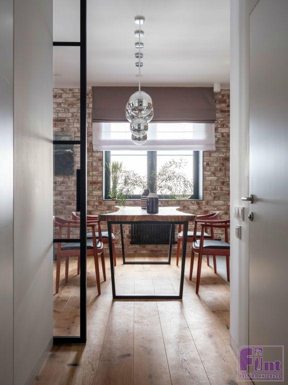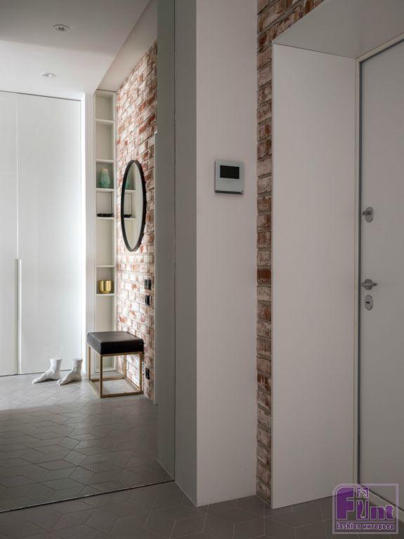 К дизайнерам обратился хозяин московской квартиры, мечтавший о современном и стильном интерьере. Заказчик живёт один, но любит время от времени принимать гостей, что также требовалось учесть в проекте. Выбор пал на скандинавский стиль с его любовью к свету и натуральным материалам. «Цвет стен в квартире — светло-серый и белый, — рассказывает Павел. — В качестве акцента при входе в квартиру и в гостиной использован кирпич». Причем последний выглядит так, будто был здесь всегда.