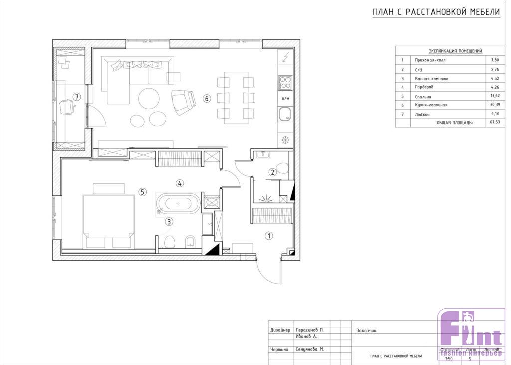 Дизайнерам удалось мастерски выполнить главное пожелание заказчика — объединить гостиную, кухню, столовую в одну большую зону. Также хозяин квартиры хотел сделать гардеробную проходной зоной, чтобы можно было из коридора попасть через неё в спальню. Это пожелание Павел и Алексей тоже реализовали весьма деликатно. При входе в квартиру слева находится дверь, ведущая в гардеробную, которая также выполняет функцию постирочной и гладильной.