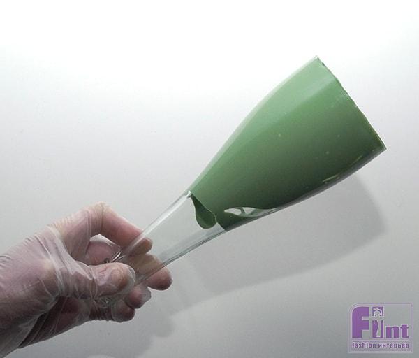 Работая с клеем-краской, используйте одноразовые латексные или полиэтиленовые перчатки (такие часто кладут в упаковки краски для волос). Налейте большое количество клея-краски внутрь бутылки, постепенно поворачивая её вокруг оси, чтобы краска равномерно растеклась по внутренней поверхности бутылки.