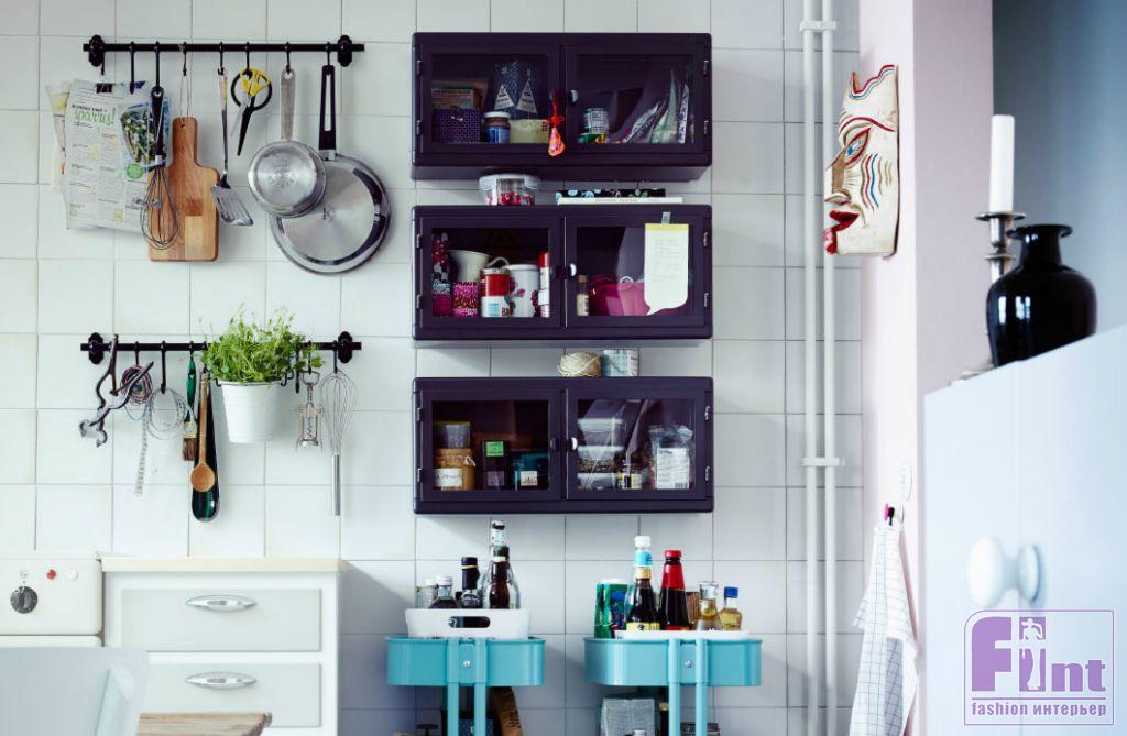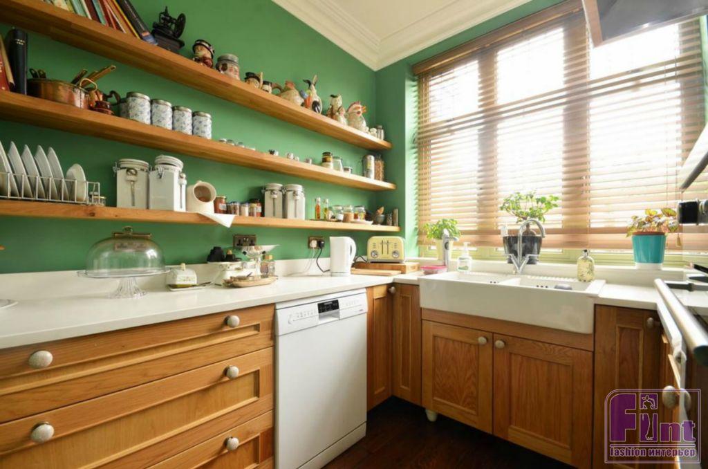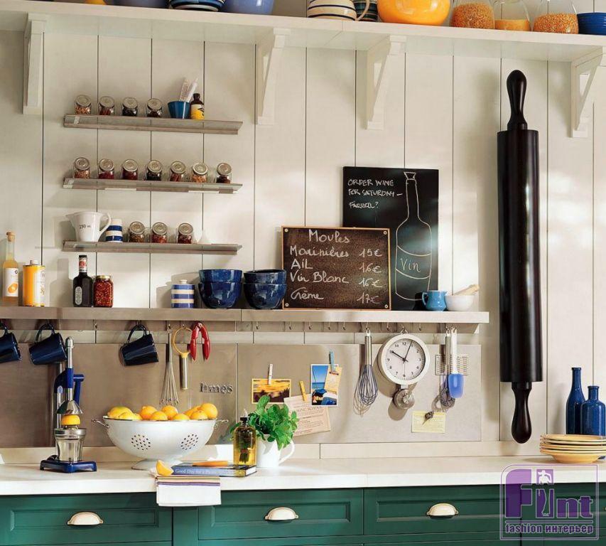 Правильно размещённые и оформленные открытые полочки всегда смотрятся стильно и оригинально. А если заменить ими громоздкие подвесные шкафы, то полочки ещё и визуально расширят пространство. Расставьте на них красивую посуду, специи и сыпучие продукты в ярких баночках, какие-нибудь приятные мелочи. Для украшения таких полочек отлично подходят сувениры на гастрономическую тему, привезённые вами из зарубежных поездок: бутылочки для греческого оливкового масла, испанская мозаичная керамика, чешские пивные кружки и т.п.