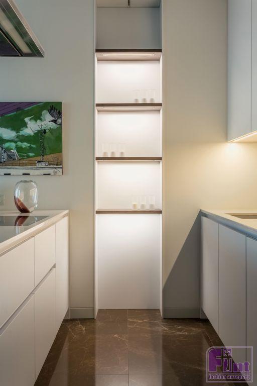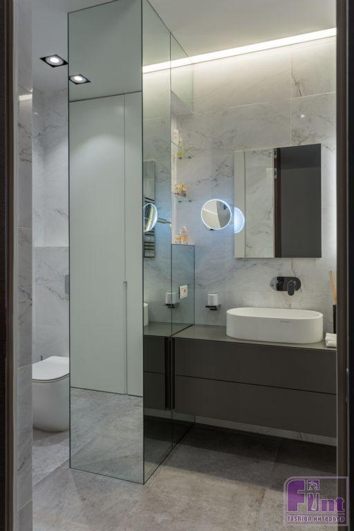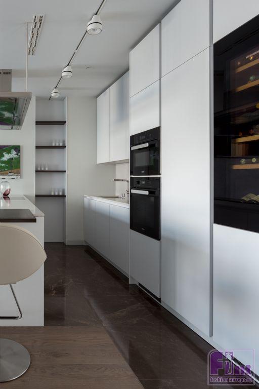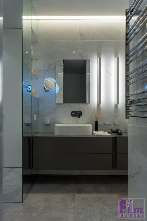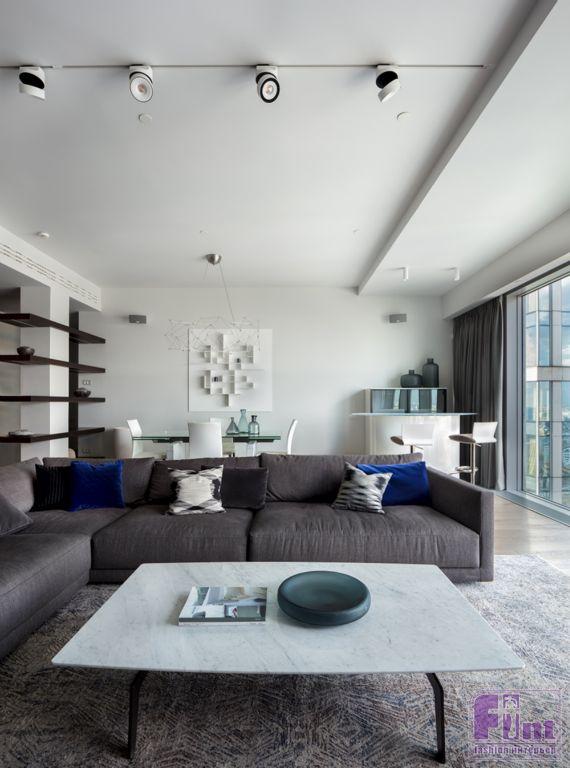Особое внимание Арам уделил вопросам освещения в этой большой по площади квартире. В различных зонах автор проекта применил комплексные схемы освещения, учитывающие естественную инсоляцию от больших панорамных окон. Сочетание общего верхнего света от потолочных светильников и местной подсветки, за которую отвечают современные системы точечной подсветки, позволило реализовать очень комфортную и качественную схему освещения практически в каждой зоне этой квартиры, включая гостиную, детскую комнату и ванную и туалет.