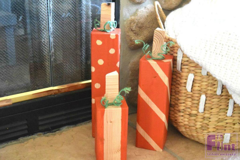 Мы подумали, что привычные круглые тыквы – это скучно, и решили сделать очень необычные тыквы из прямоугольных деревянных брусков! Наши «альтернативные» тыквы, несмотря на весьма оригинальный внешний вид, всё-таки напоминают своих природных собратьев, а декоративный эффект от наших «тыкв» сожжет быть значительно интереснее, нежели от привычных овощей с грядки.