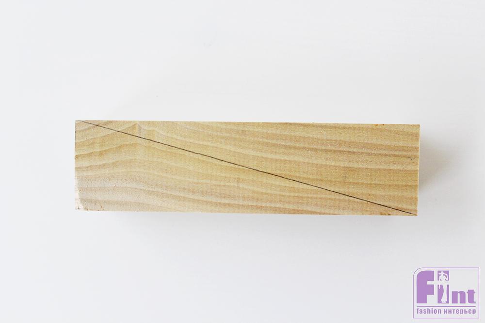 Используя карандаш и линейку, нарисуйте на одной из сторон бруска прямую линию по диагонали из одного угла в противоположный угол. После этого осталось аккуратно распилить брусок по диагонали, используя ножовку по дереву. Удобнее пилить брусок, если он у вас большей длины, чем нужно. В этом случае вы сможете комфортно его удерживать. Для короткой заготовки могут потребоваться столярные зажимы. Тщательно обработайте заготовку наждачной бумагой, чтобы она стала гладкой, особенно в месте отпила.