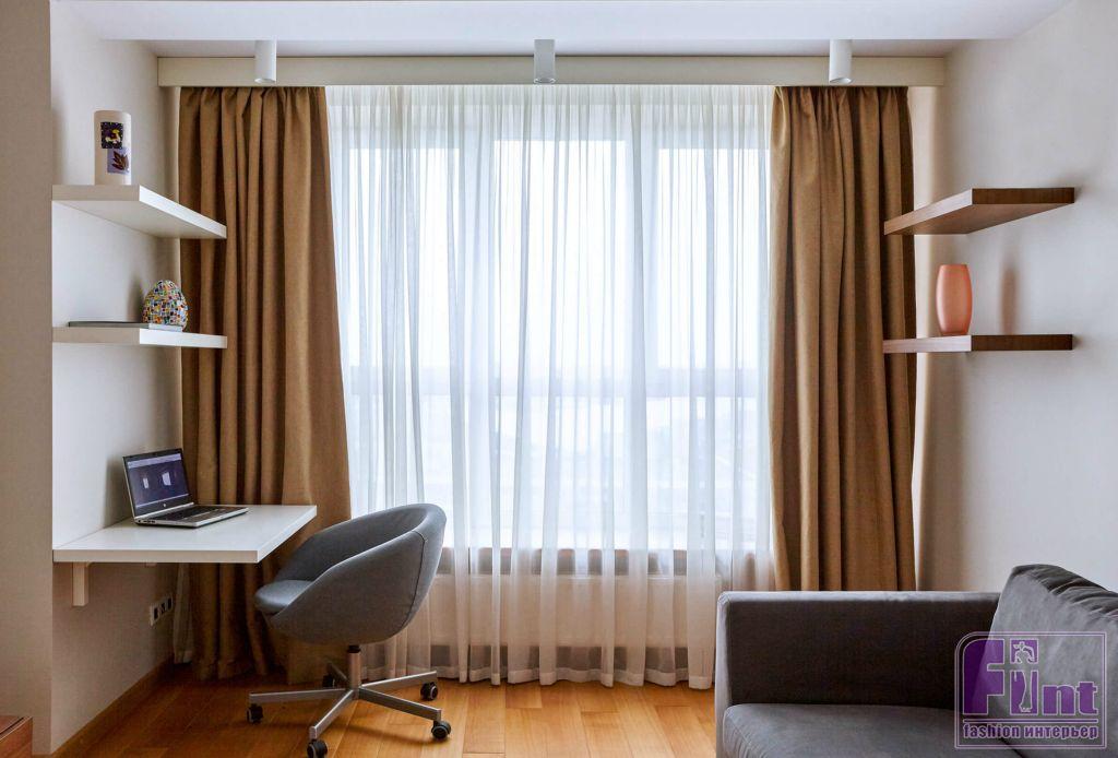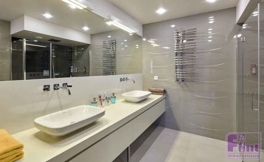 В дизайн-проекте квартиры использованы светильники ведущих европейских фабрик, а также мебель от известных итальянских производителей. Благодаря грамотно спроектированному пространству, квартира получила довольно большое количество систем хранения практически во всех помещениях. Стеллажи в гостиной и прихожей, глубокие встроенные шкафы в хозяйской спальне и детской комнате и вместительное подстолье под раковинами в ванной.