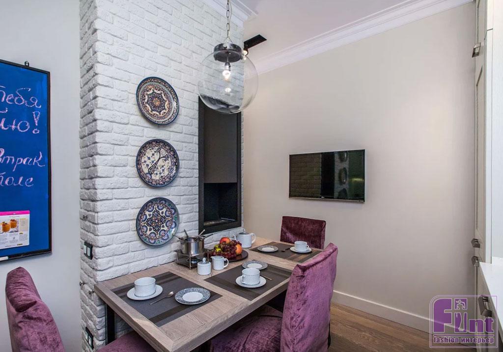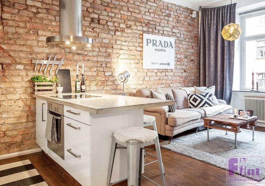 Облицовка одной стены декоративными кирпичами придает особое очарование кухне и столовой. Чтобы сделать комнату ещё более современной, вы можете комбинировать кирпичи с красивыми настенными светильниками, выгодно подчёркивающими стильную фактуру кирпичной кладки.