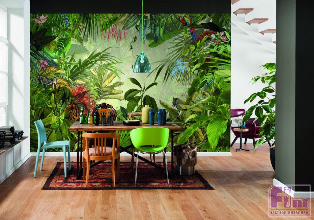 Фотообои - это простой и стильный способ украсить вашу кухню. Может сочетаться с картинами или рамками. Тем более, что технологии шагнули вперёд, и сейчас можно украсить стены кухни экологически чистыми, противопожарными и невероятно прочными фотообоями на основе стеклотканевых обоев.