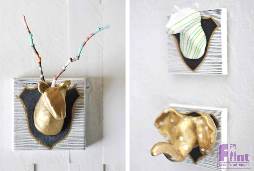 Украшение стен охотничьими трофеями – один из самых древних дизайнерских приёмов декорирования жилища. Сегодня мы предлагаем вам сделать панно в виде стилизованных охотничьих трофеев, которые смогут одновременно порадовать и защитников животных, и поклонников стильного декора. Для наших панно не потребуется жертв животных, и «жестоко» мы будем обходиться лишь с современной полимерной глиной, отвердевающей на воздухе. Поскольку раньше такие охотничьи трофеи почти всегда размещались в интерьере большими группами, мы, отдавая дань многовековой традиции, также сделаем не одно, а целых три панно!