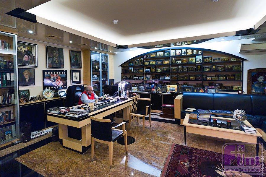 Гордость дома – восстановленный камин с огромной эмблемой «Мосфильма». На стенах сегодня развешены многочисленные афиши в винтажном стиле. Среди них много оригинальных творений 1930-1940-х годов. Много ценного нашлось на чердаке и в чулане. Добровинский даже начал собирать свою коллекцию, в которой сейчас около двух тысяч экспонатов.