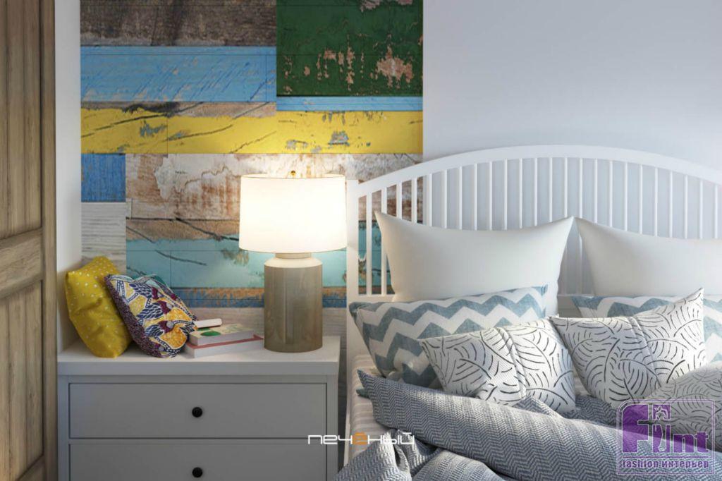 — Какая изумительная идея сделать асимметричную цветную вставку на белой стене в спальне!