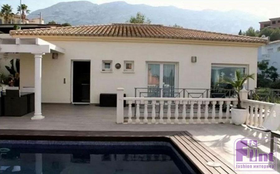 Белоснежный особняк с просторной террасой насчитывает два этажа и имеет относительно скромную площадь в 470 кв. метров. Знатоки уверяют, что спроектирован он в скандинавском стиле, внешнюю строгость которого оживляют немного классики и чуть-чуть модерна.