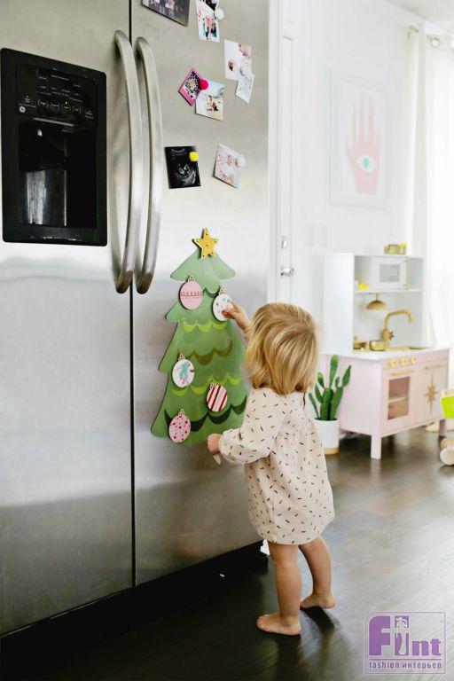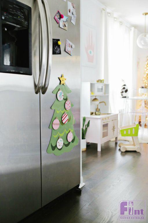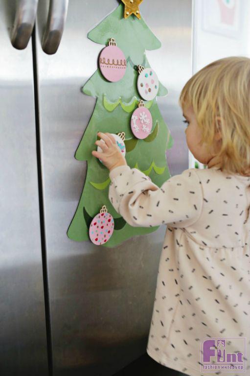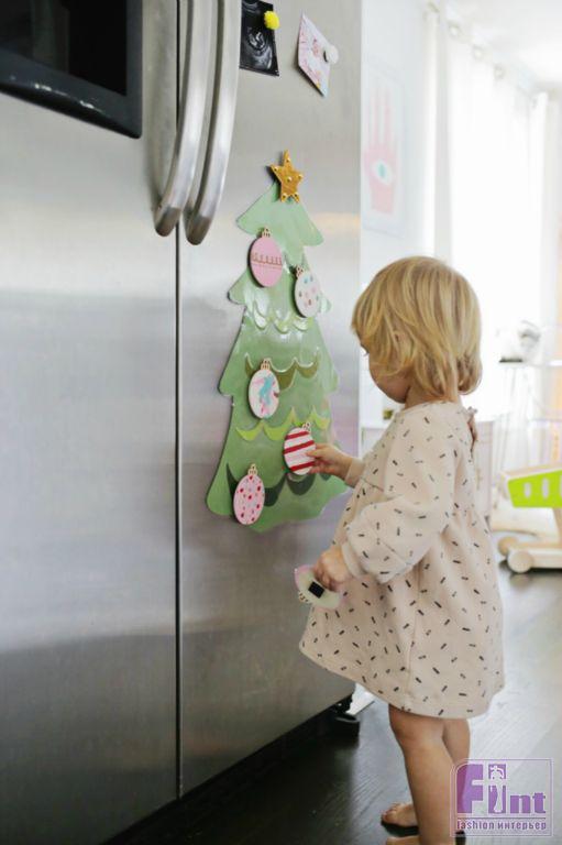 Достаточно укрепить на макушке ёлочки звезду, чтобы наше праздничное дерево заняло своё место на вашем холодильнике. А затем украсьте ёлку всеми изготовленными ёлочными игрушками, расположение которых вы можете изменять по своему желанию в любой момент! Вот такая прекрасная ёлочка, сделанная своими руками, не только украсит ваш дом, но и сэкономит ваши нервы, поскольку за её сохранность можно будет не беспокоиться!