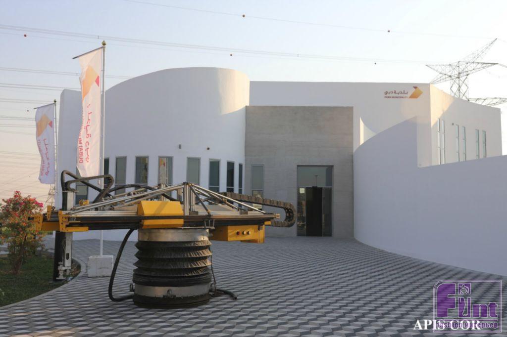 Общая площадь двухэтажного административного здания составляет 640 кв. м, высота — 9,5 м. В качестве сырья использовался специальный гипсовый раствор, адаптированный под жаркий и засушливый климат Объединённых Арабских Эмиратов. «Печать» осуществлялась с помощью портативного 3D-принтера, установленного на кране. У команды из трёх инженеров работы заняли около трёх недель.
