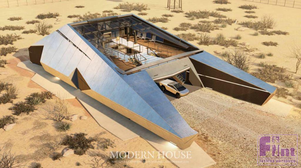 Концепцию Cyberhouse петербуржцы представили в середине декабря. Вдохновленное последней моделью пикапа Tesla, здание представляет собой автономный многоуровневый бункер, рассчитанный на проживание 6-7 человек. Наклонные стены из монолитного железобетона и сверхпрочной стали вкупе с бронированными окнами, металлическими ставнями-жалюзи и шлюзовыми дверями позволяют эксплуатировать его в самых экстремальных ситуациях: от ядерной войны до зомбиапокалипсиса.
