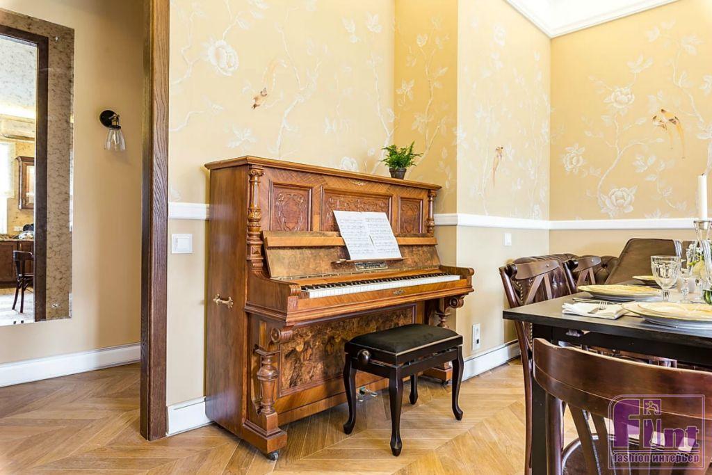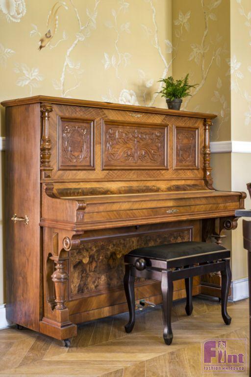 Заключительным штрихом стали стильные ручки с деталями из керамики, они выполнены в цвете состаренной бронзы. Диван для гостиной выбрали в классическом английском стиле. Этой модели уже 300 лет, но она по-прежнему востребована и актуальна. Ещё один подарок от программы для Ирины Вадимовны – концертное пианино. Оно было сделано в Германии в первой половине двадцатого века, а в конце 2016 года российская компания провела его полную реставрацию.