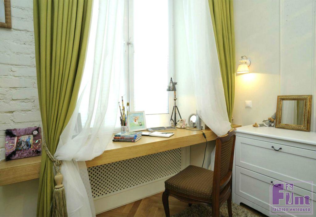 И снова грамотное решение для владельцев небольших помещений: обустройте кабинет прямо под окном, немного увеличив площадь подоконника. Этот приём поможет сэкономить не только пространство, но и электроэнергию: с таким источником дневного света вам до вечера не потребуется лампа, особенно в летний период.