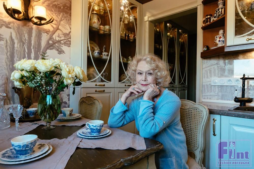 Перед дизайнером была поставлена сложнейшая задача: с одной стороны, провести обновление в жилом пространстве Народной артистки, а с другой стороны – сберечь особую атмосферу дома, предметы, дорогие сердцу воспоминания. Надо отметить, что дизайнеру удалось весьма деликатно объединить все эти элементы воедино, не забыв к тому же о том, что кухня должна оставаться пространством практичным и функциональным.