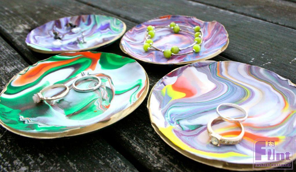 Появление на рынке рукоделия полимерной глины сделало эту мечту реальностью! Теперь можно не только слепить что угодно, но и не бояться за сохранность своего творения. Более того, изделия из полимерной глины можно не только использовать в качестве декоративного украшения, но и применять их во вполне утилитарном качестве. Сегодня мы расскажем, как сделать из полимерной глины невероятно красивые тарелки с мраморным эффектом, которыми можно украсить интерьер и использовать в качестве мест хранения украшений, бижутерии, ключей от квартиры, металлических денег и тому подобных бытовых мелочей.