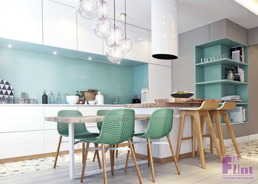 Минимализм добрался и до кухонного помещения: чем больше оно похоже на гостиную, тем лучше. Чтобы реализовать этот тренд, следует использовать фасады без ручек, открытые полки с «комнатным» декором (картинами, книгами), и не оставлять кухонную технику и посуду на виду.