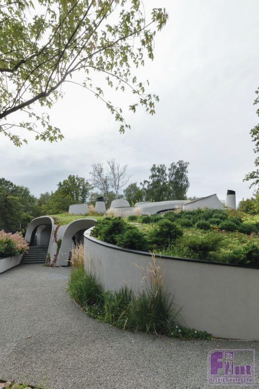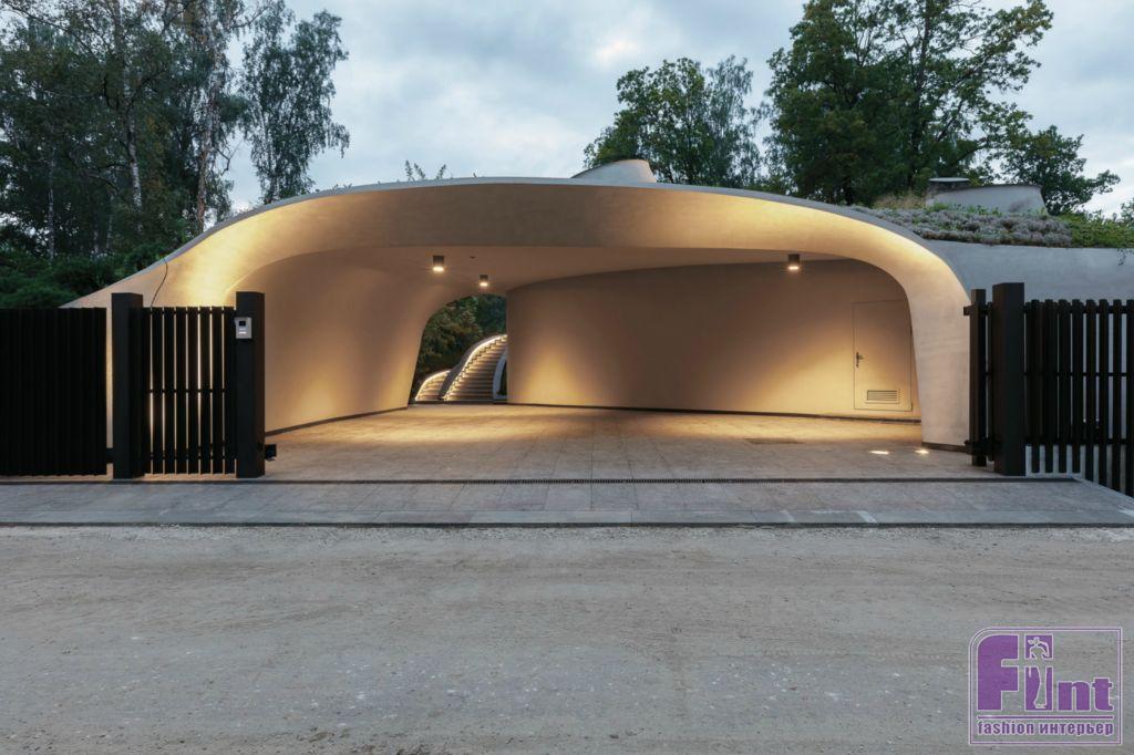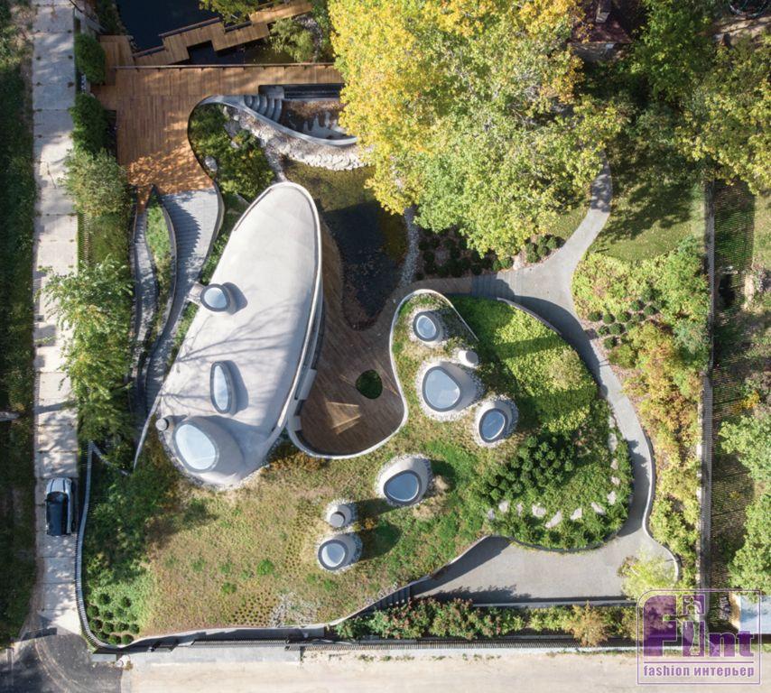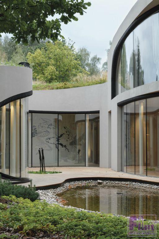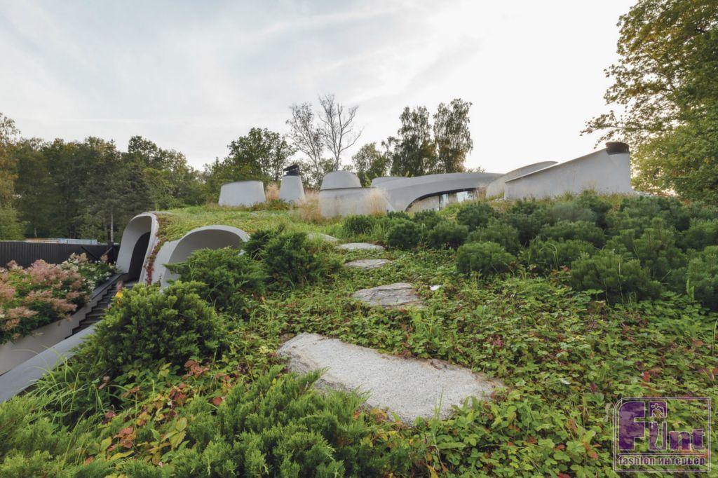 В Чеховском районе Подмосковья возвели необычный футуристический дом. Его стены и крыша представляют собой искусственный холм, покрытый зеленью и вписанный в окружающий ландшафт. Такая бионическая форма благоприятно влияет на эмоциональное состояние проживающих в нём людей, считают авторы проекта. Архитектурный проект разработала студия Niko architect Станислава Николаева.\