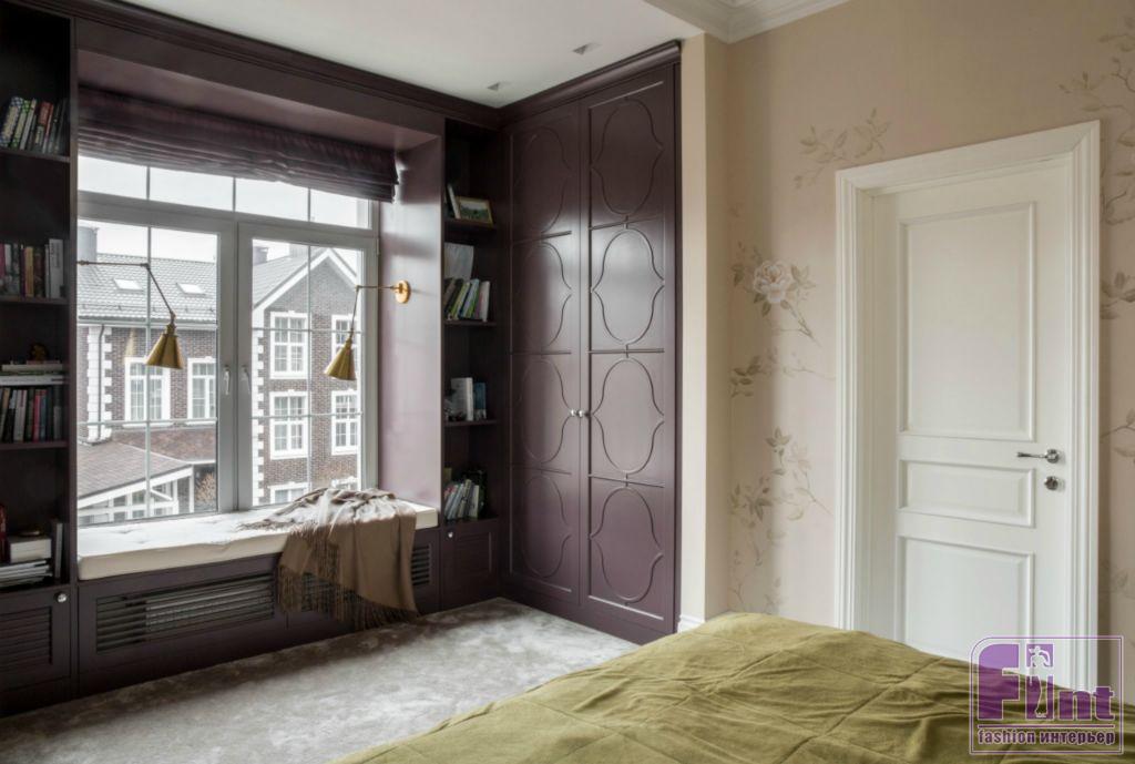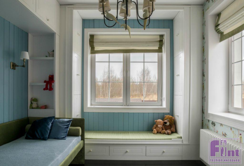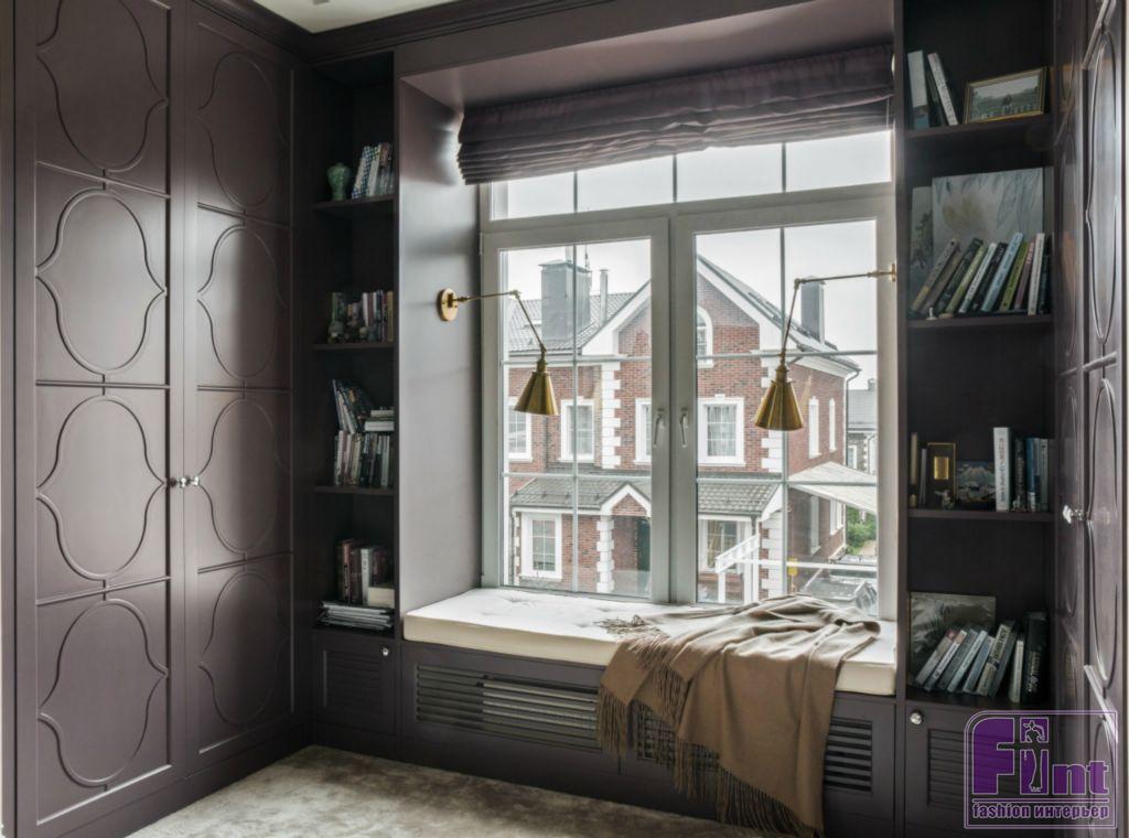 В нескольких приватных помещениях, среди которых спальни и детская комната, дизайнеры предусмотрели увеличение ширины подоконника и превращение его в уютную лаунж-зону. Для этого плоскость подоконника была опущена и дополнена мягким прямоугольным матрасом. Задекорированные панелями оконные откосы снабдили с обеих сторон окна бра на телескопических ножках, которые позволяют направить освещение в нужную точку лаунж-зоны. Под подоконниками и по бокам от окон дизайнеры предусмотрели комфортные места хранения с многочисленными ящичками.
