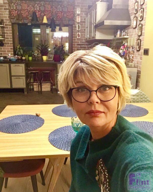 Юлия творческий и увлекающийся человек, несмотря на внешнюю хрупкость и утонченность, способна свернуть горы ради того, чтобы достичь поставленной цели и неважно в каком амплуа. Будут это карьерные достижения или обычный ремонт, который она наконец-то закончила. В обновлённом жилье Юлии до неузнаваемости изменилась обстановка и зонирование кухни-столовой. Теперь здесь преобладают мягкие пастельные тона. Зона хозяйки стилизована под загородный дом, в котором стены выложены плиткой, напоминающей природный камень и кирпич. Окна задрапированы красивой шторной композицией с ненавязчивым орнаментом.