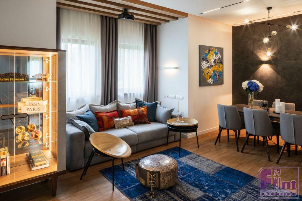 Специалистам удалось воплотить все ожидания придирчивого экс ведущего программы «Контрольная закупка» в жизнь. Теперь у него многофункциональная гостиная, в которой прослеживается строгий скандинавский стиль. Дизайнеры взяли в расчет то, что хозяин дома увлекается восточной философией, поэтому в интерьере встречается и восточный минимализм.