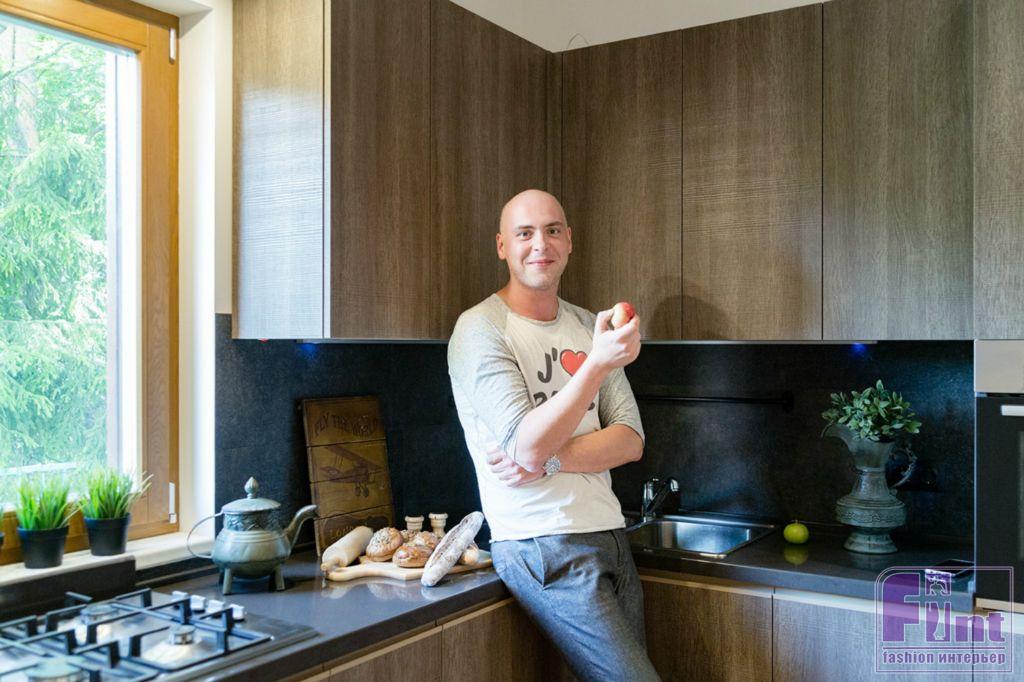 Одновременно с гостиной Антон обновил и кухню. Покупая кухонный гарнитур, звёзды часто ставят на первое место роскошь. А как поступают звёздные эксперты и специалисты по качеству продукции? Практичность, долговечность, красота и высокие эксплуатационные характеристики – вот, что искал Антон в первую очередь. Вне телеэкрана он остался верен себе, сделав ставку на стильный и эргономичый кухонный гарнитур, который прекрасно вписался в интерьер кухни его загородного дома.