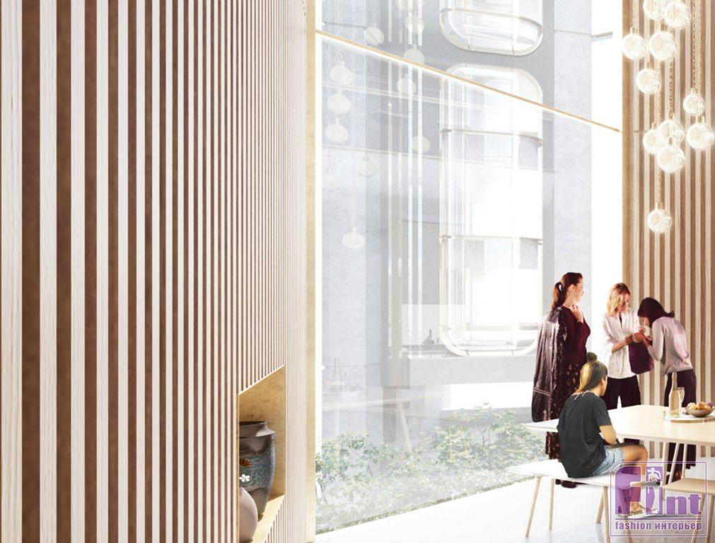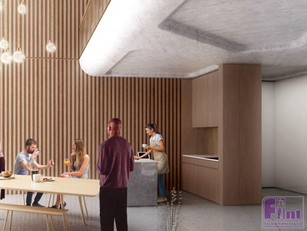 По замыслу архитекторов, удовлетворить потребность в общении малознакомых между собой людей смогут специально спроектированные общественные пространства, соединяющие функционал кухни и столовой. «Это место, где люди смогут вместе готовить и обмениваться идеями», — поясняют авторы проекта. В комплексе одна такая кухня-столовая будет приходиться на каждые 12 апартаментов.