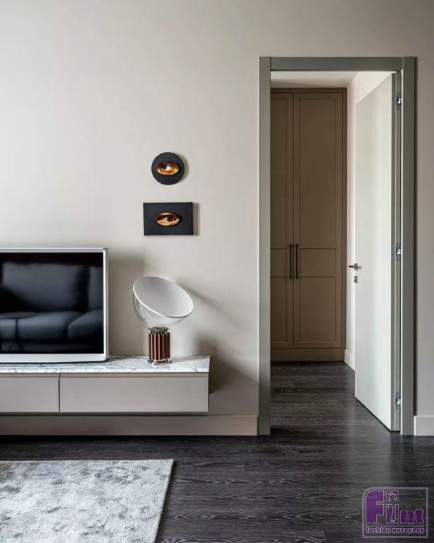 Корпусная мебель была изготовлена на заказ по эскизам автора проекта российскими столярными мастерскими. Отдельностоящие предметы от европейских марок стали примечательными акцентами. Обращают на себя внимание лёгкий кофейный столик, ставший прекрасной парой для обеденного стола от знаменитой европейской фабрики и, конечно, профессионально решённая световая схема интерьера.