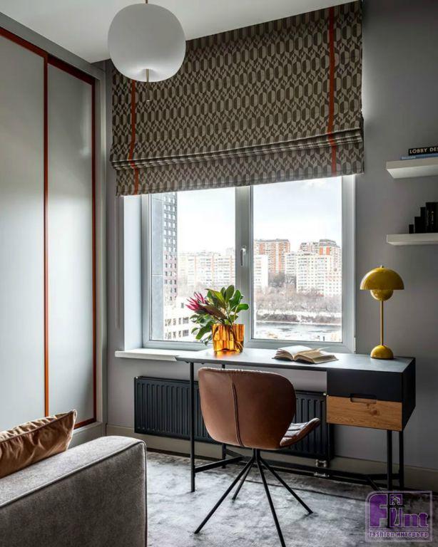 Системы хранения также пришлось продумывать в исходных условиях: в проекте не было заложено отдельной гардеробной. В результате по проекту дизайнера в кабинете оборудовали вместительный шкаф во всю стену, а на кухне создали дополнительный ряд верхних шкафов. Благодаря этим дизайнерским решениям удалось максимально разгрузить зону гостиной, внеся в её интерьер визуальный простор и вполне реальное свободное пространство.