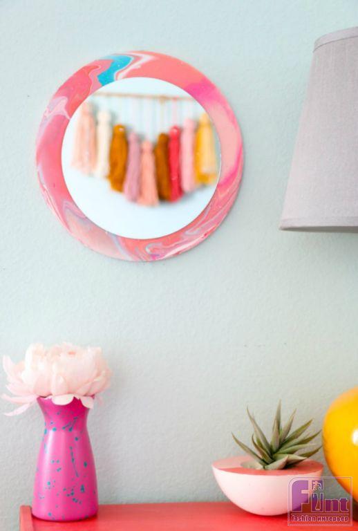 Как сделать настенное зеркало с удивительно красивой рамой с мраморным эффектом