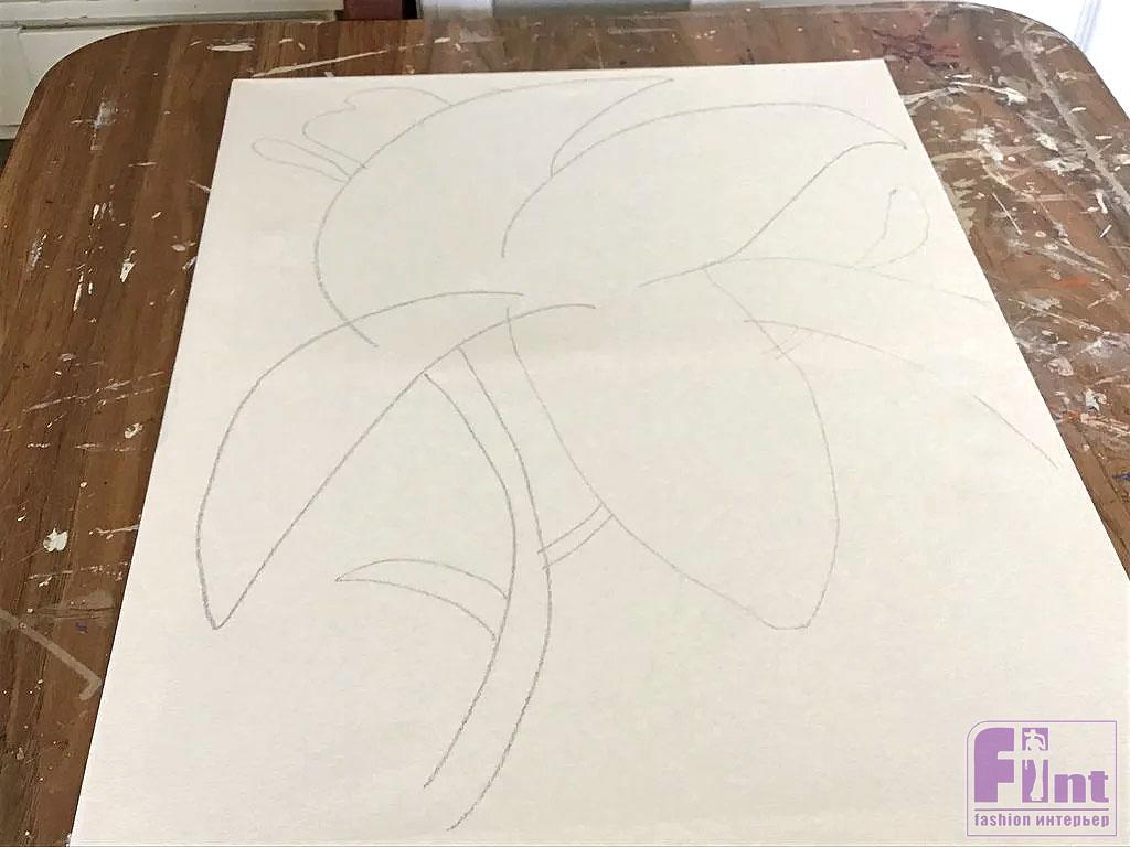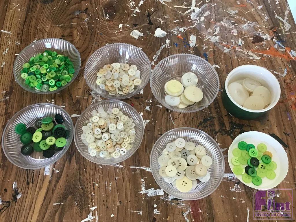 Перед началом работы вам нужно будет нарисовать контур выбранного цветка на холсте с помощью карандаша. Не волнуйтесь, если вы сделаете ошибку, поскольку в дальнейшем мы будем закрашивать тёмной краской, которая скроет следы от карандаша. Для этого проекта мы будем использовать только плоские пуговицы, поэтому для начала проведите сортировку всех запасов пуговиц и отберите подходящие по цвету.