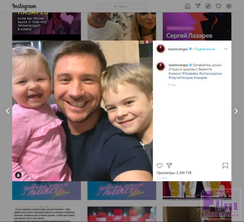 Так, Сергей Лазарев не скрывает, что наслаждается общением с детьми — 5-летним Никитой и полуторагодовалой Аней, и призывает искать плюсы в сложившейся ситуации: «Такая вынужденная временная остановка в концертном графике из-за угрозы распространения вируса — прекрасная возможность побыть больше с семьёй! Поиграть, почитать, посмотреть фильмы! Давайте уже выключать «панику». Сами себя загоняем в депрессию».