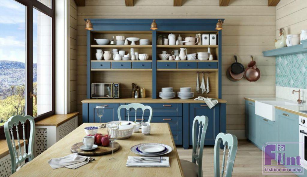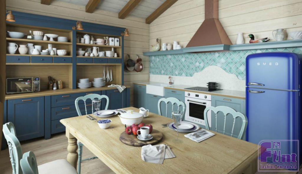 Перед Мариной Кутеповой не стояла задача воссоздать какой-либо конкретный интерьерный стиль в чистом виде. Заказчице интерьера этого дома очень нравятся насыщенные колористические сочетания, поэтому основной отправной точкой дизайна интерьера стал диван в глубоком синем цвете Ralf Louren. Именно вокруг него и большого дровяного камина строилась зона отдыха в гостиной, к которой примыкает пространство кухни и становится частью единого целого.