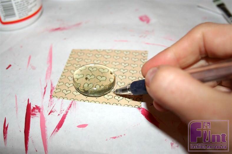Обведя по контуру наши бусины, вырежьте фотографии по размеру бусин. Используя клей для декупажа, приклейте вырезанные фотографии к стеклянным бусинам лицевой стороной внутрь. Клей для декупажа после высыхания становится абсолютно прозрачным, и не будет искажать фото под поверхностью стеклянной бусины.