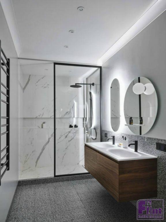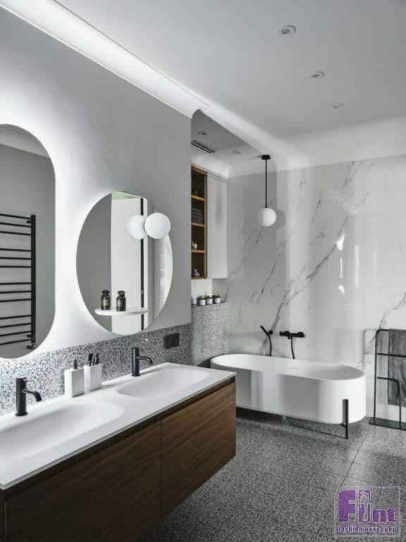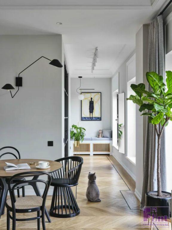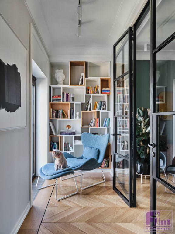 Особой гордостью для хозяина в квартире является, безусловно, функциональная, вместительная и стильная гардеробная, которая разделена на 2 зоны. Одна зона под аксессуары, сумки, обувь и короткую одежду. Вторая же под длинную уличную одежду и места для стиральной машины и сушилки. Компанию стилисту в большой квартире составляет его любимый питомец, кот породы британец и с оригинальной кличкой - Кот. Наличие домашнего животного бралось в расчет при проекте квартиры. У пушистого соседа имеется свой вход в гостевой санузел, именно там находится его лоток.
